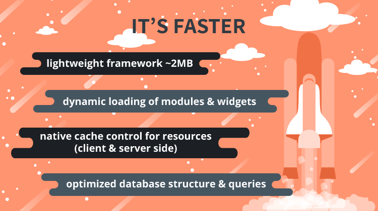 - Global modules: connect to instance modules and handle functionality like user management or e-shop