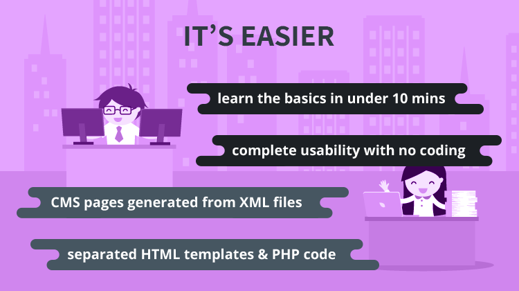 Thanks to our simple and fast templating engine, you'll rediscover the joy of modifying someone else's HTML code.